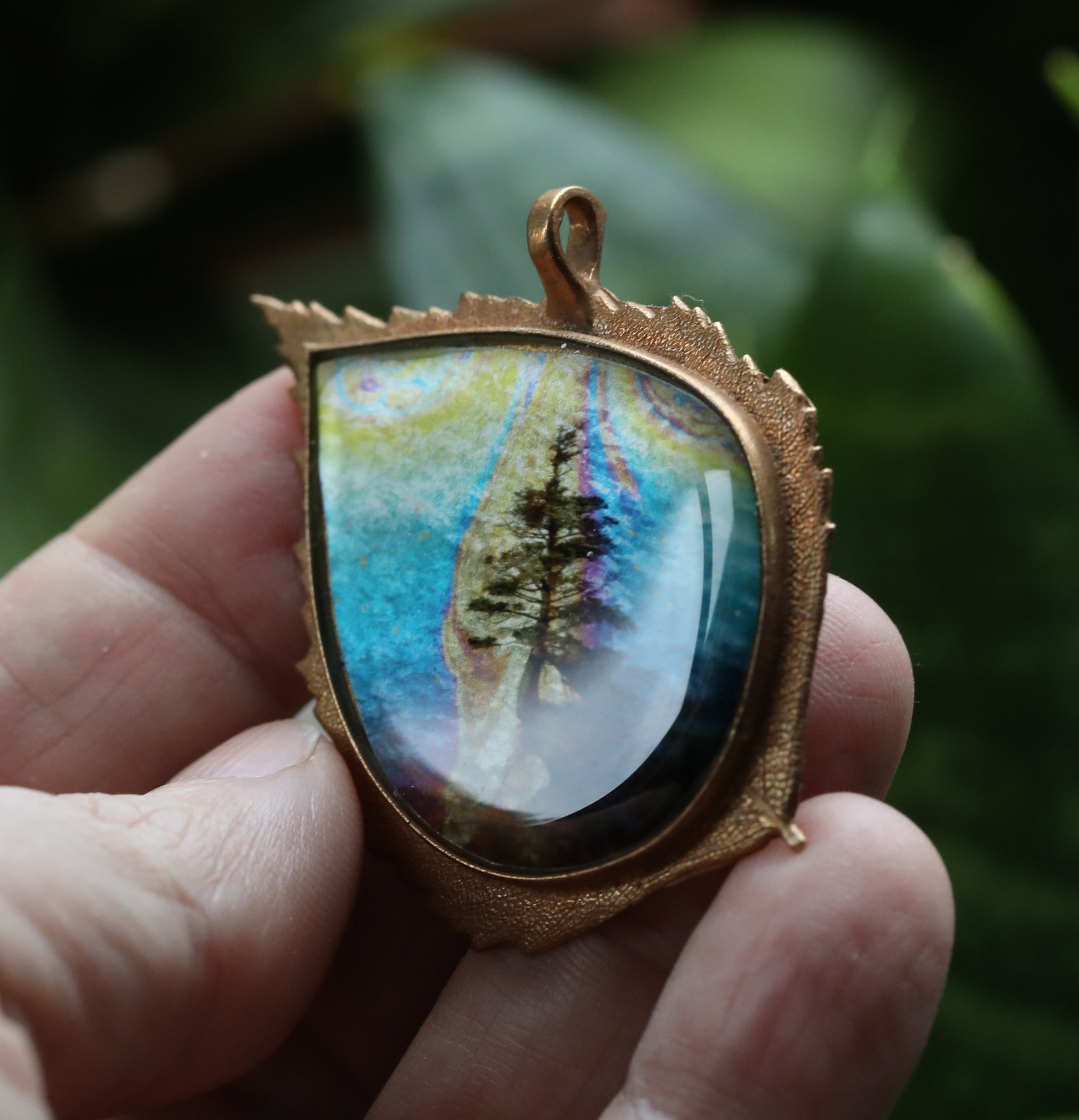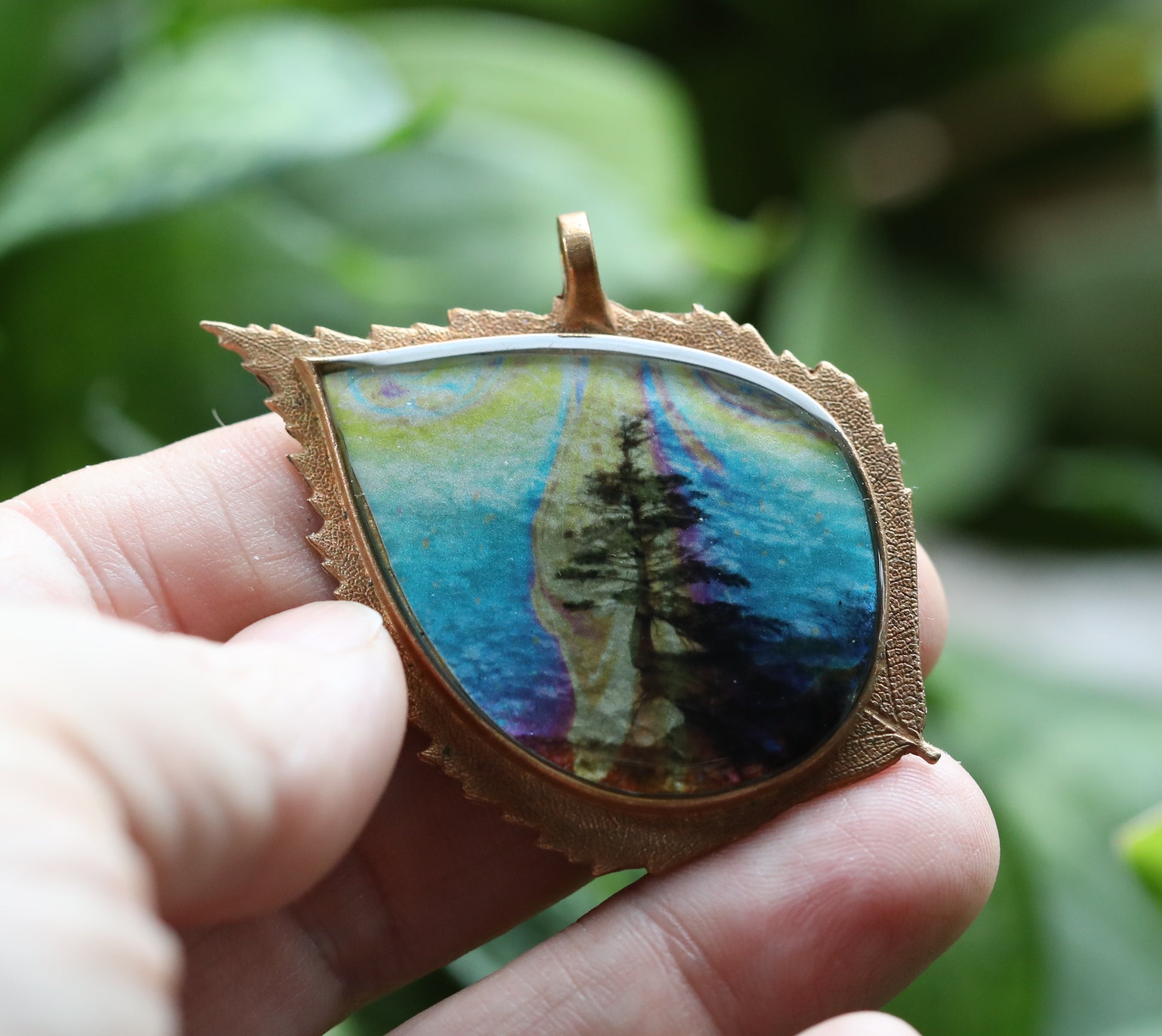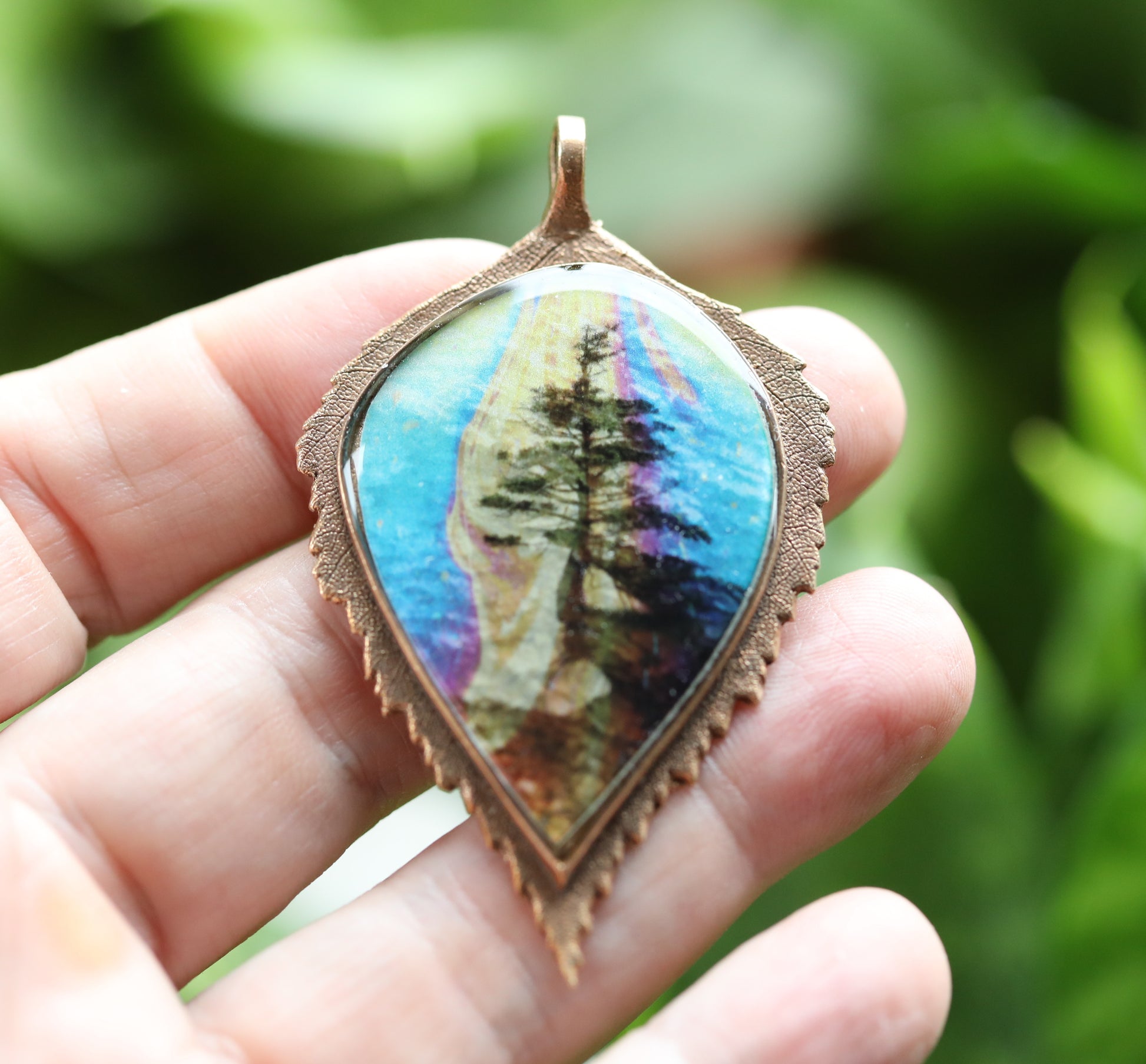 Handmade Birch Leaf pendant with Beautiful Image Featuring a tree